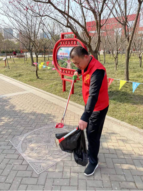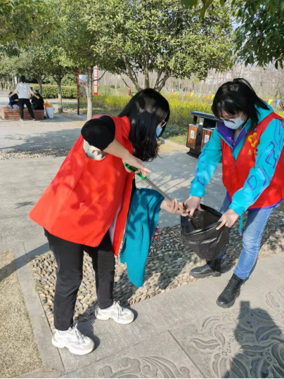 2022年3月11日下午,j成人毛片A级教师党员志愿者一行来到羊山新区百花园,开启以“美好生活看信阳”为主题的党员志愿系列服务活动。
