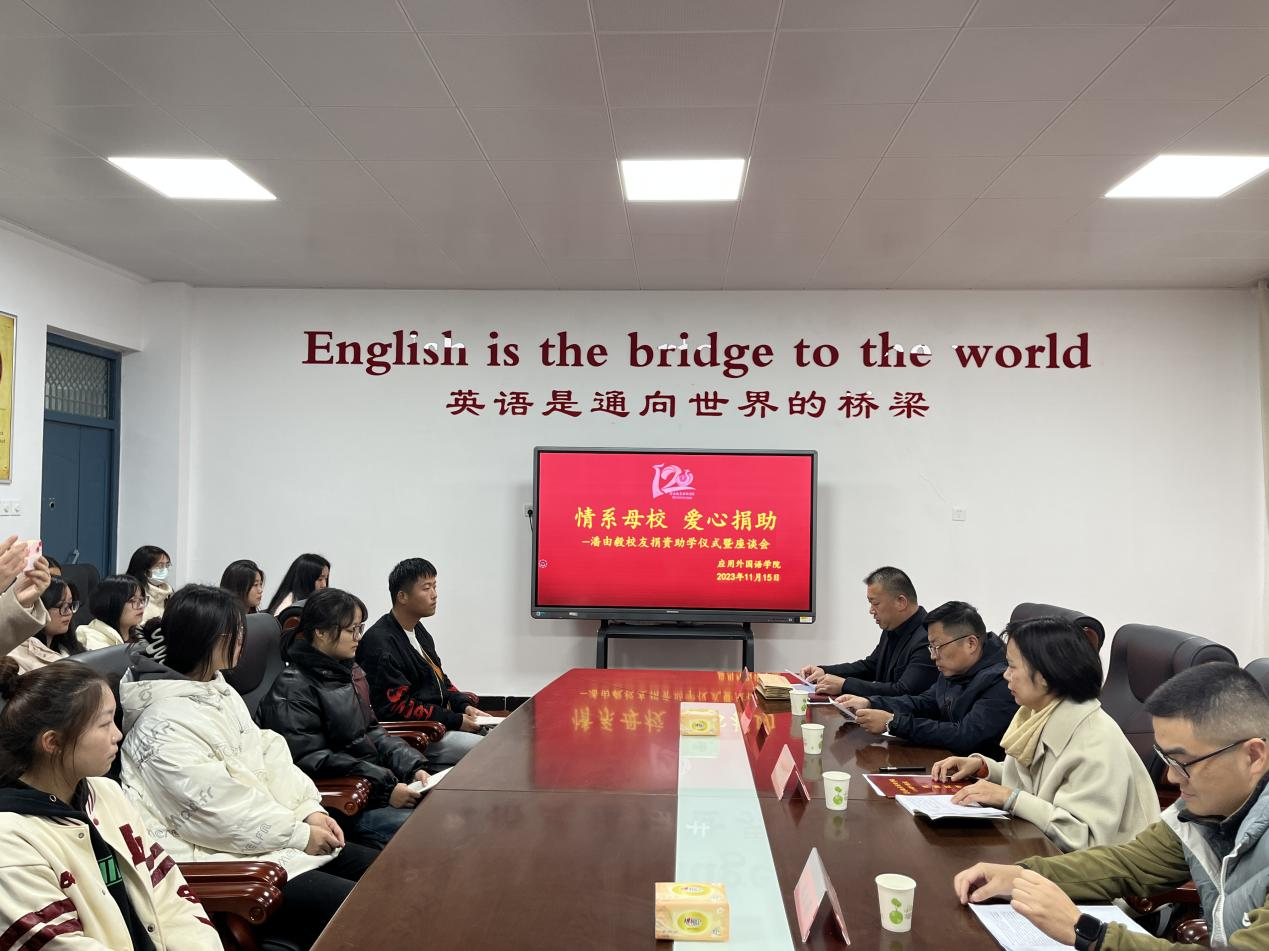 11月15日下午,j成人毛片A级在2406会议室隆重举行优秀校友捐赠仪式。j成人毛片A级院长刘晓鹂、学校党办副主任许奎元,教师代表梁刚、段红以及优秀校友深圳市晟泉科技有限公司董事长潘由毅出席仪式,参加仪式的还有j成人毛片A级接受资助的学生。仪式由学院党总支副书记张泽锋主持。