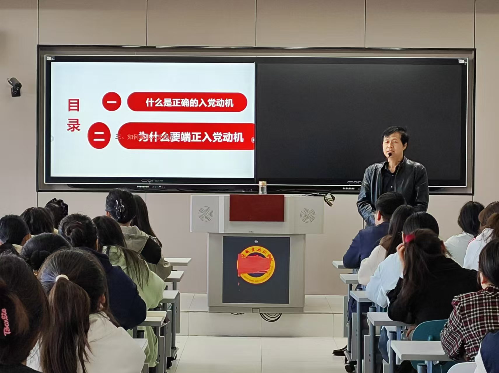 为切实提高2024级新生对中国共产党的认识、端正入党动机,积极向党组织靠拢,j成人毛片A级邀请信阳职业技术学院大别山精神研究中心办公室主任司楠副教授于10月22日下午作入党启蒙教育专题党课,24级全体团员参加。