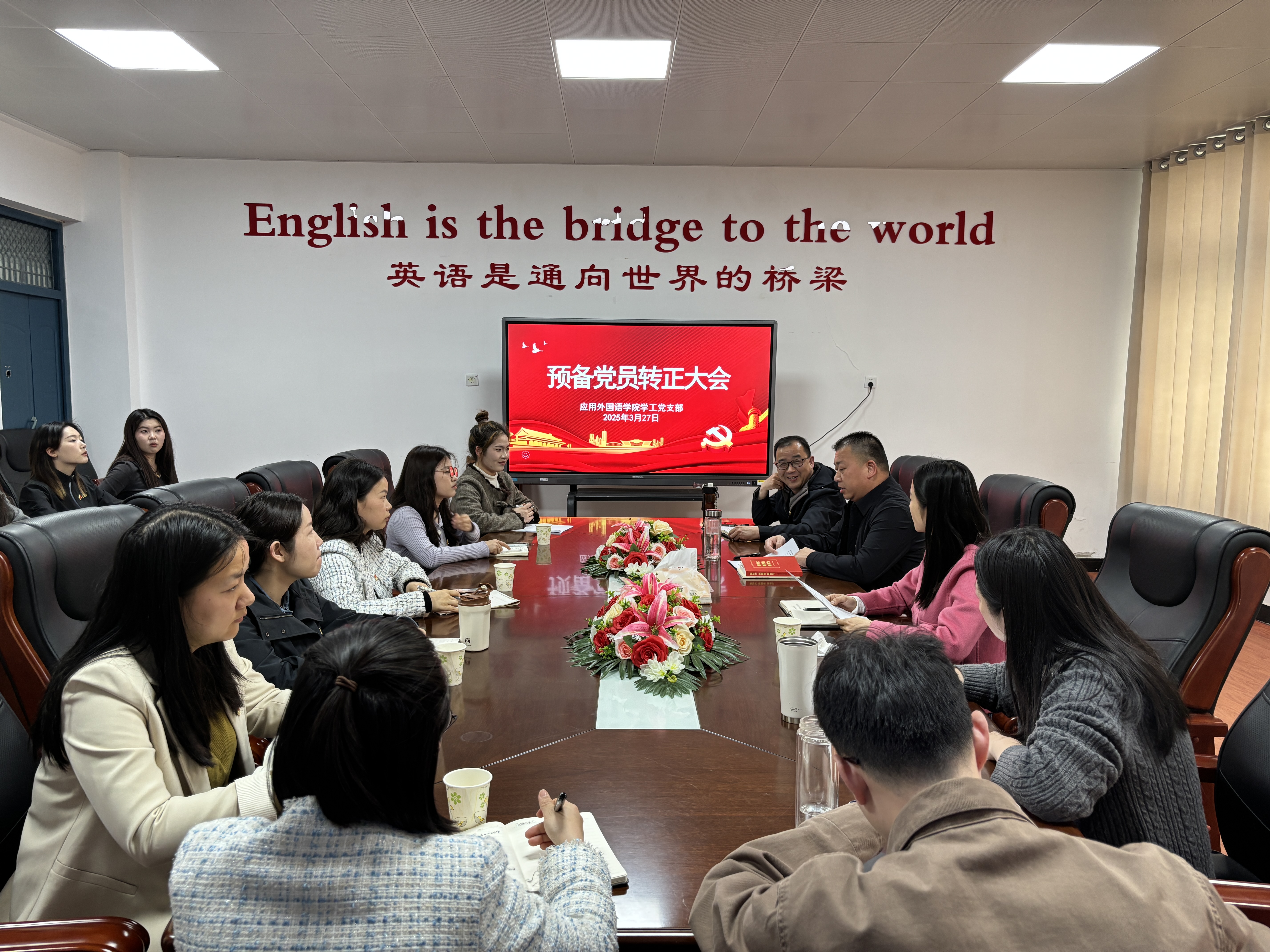 为进一步做好党员发展工作,加强党组织队伍建设,增强党员队伍的凝聚力,j成人毛片A级于2025年3月27日在2406会议室举行预备党员转正大会。学工支部全体师生成员,入党介绍人肖园丽、谢福良、彭琴,以及程姝雅等6名预备党员参加,会议由组织委员蒋曾主持。
