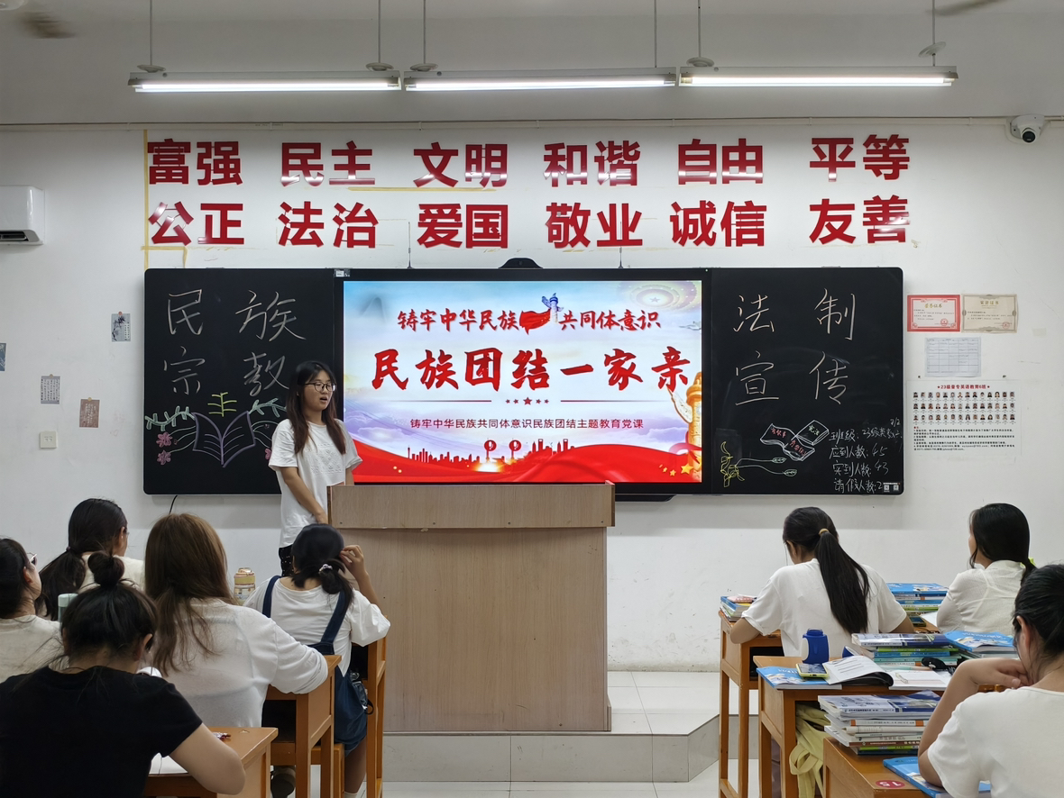 为加强学生思想政治教育,强化安全防范意识,教育学生铸牢中华民族共同体意识,防邪教、防宗教渗透,j成人毛片A级于2024年9月3日晚自习召开“民族宗教政策法规宣传”主题班会,班会由各班班长主持。