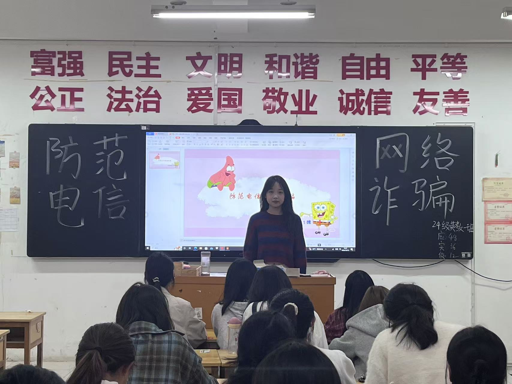为进一步普及防诈骗知识,提高同学们的安全防范意识,j成人毛片A级于2024年10月15日晚组织开展“防范电信网络诈骗”主题班会,班会由各班班长主持。