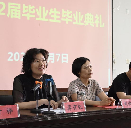 学校党委委员、纪委书记蒋有红代表学校作了讲话,向毕业生们提出希望和要求。蒋书记强调指出:一个人的格局,决定他的人生高度!期待同学们立鸿鹄之志,把个人理想和人生价值以及国家民族发展的前途和命运紧密联系起来,在社会发展的浪潮中展现自己的大格局,书写出属于自己的绚丽青春华章,为实现“两个一百年”的奋斗目标和中华民族伟大复兴中国梦贡献自己的力量。她向同学们提出殷切希望:一要心怀梦想,不负韶华,与时代同步伐,与人民共命运,立为国奉献之志,立为民服务之志。二要修身立德,风正行远,不人云亦云,盲目跟风,保持定力,严守规矩。三要终身学习,不断成长,在工作中增长才干,练就本领,以真才实学服务人民,以创新创造贡献国家!