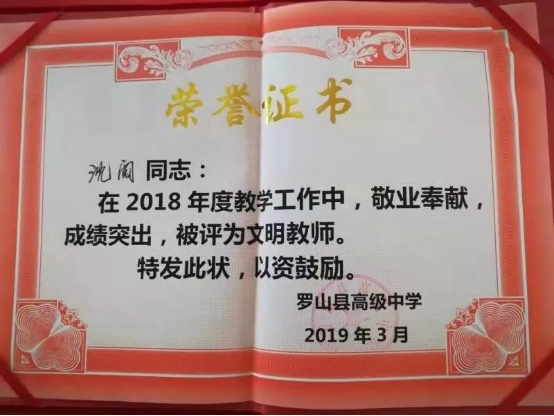 2009年,在参加工作三年之际,他迎来了教学生涯的第二次飞跃,省级示范高中的罗山高中在全县选聘教师,他立刻参加试讲大赛,因成绩突出而顺理成章调入罗山高中,跳出井底他才知天下之大,罗山高中卧虎藏龙,许多教师都是省市级学科带头人,他的同龄人许多都是硕士研究生。毫无疑问第一学历只是专科的他想在罗高立足,机遇与挑战并存。面对挑战,他又一次爆发了压力下求生的本能,为了名誉和尊严他只能拼,其中的酸甜苦辣更是一言难尽,因为他明白他不能给母校丢人,不能让别人说信阳职业技术学院的毕业生就是不行。好在天道酬勤,在一年一度的全县教学创新大赛上他多次获得一等奖。他连续五年担任高三毕业班班主任,班级高考成绩屡次超越县教体局下达的指标任务。五年来,他所任班级为985、 211 名牌大学输送了一百多名新生。