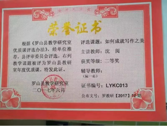 学历上的达标保证了实力上的自信,实力上的自信带来了魅力上的升华,让学生佩服才能赢得他们发自内心的尊敬。他清楚的记得有一次早读,有个淘气学生在一本课外资料上查得一道他自认为很难的选择题写在黑板上,他明知答案是A,却在班里高声说道:“沈老师,请告诉大家为什么这道题答案是B?”在全班同学的注视下,我立刻十分肯定地回答:“答案是B的原因是答案错了,该题的正确答案应该是A”,与此同时,他详细地跟学生解释原因。很神奇,从此之后,班内学生似乎都成了他的粉丝,连看他的眼神都变了。亲其师信其道,从此该班英语课堂纪律和英语成绩超常的好。事后他常反思,如果他的基本功不扎实,被淘气学生牵着鼻子按错误答案B忽悠一通,他即使不被哄下讲台也必然在学生面前威信全无,难以立足。正是在这种危机感和压力下,他始终不忘学习,同时注重探索新的课堂教学模式并加强师生课堂互动,改变了高中课堂“沉闷化”这一共性,连续两年教学成绩在全县同类高中夺魁,期间一批罗高老师曾经来到莽张高中走进他的课堂听课教研。